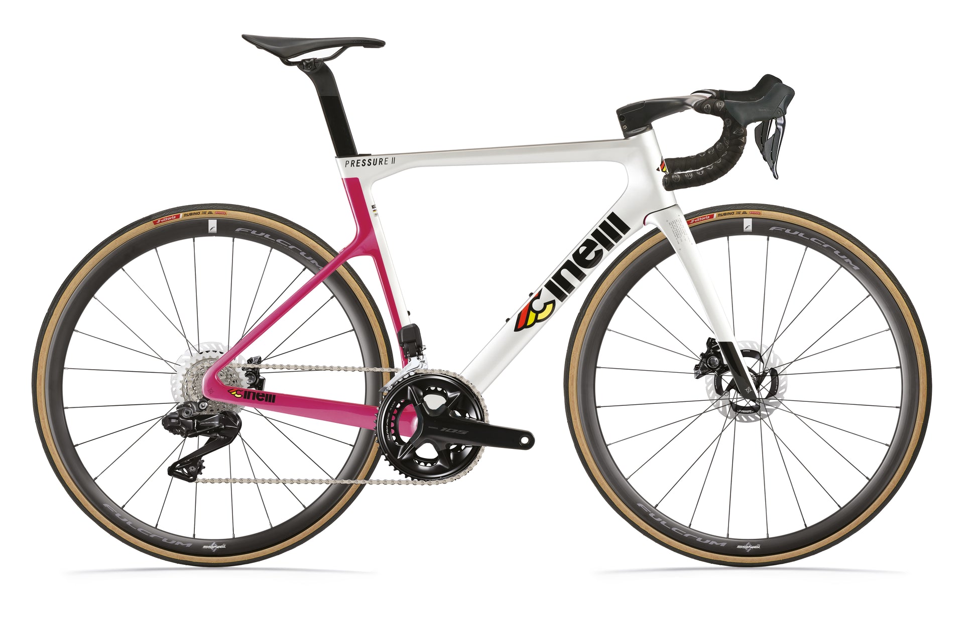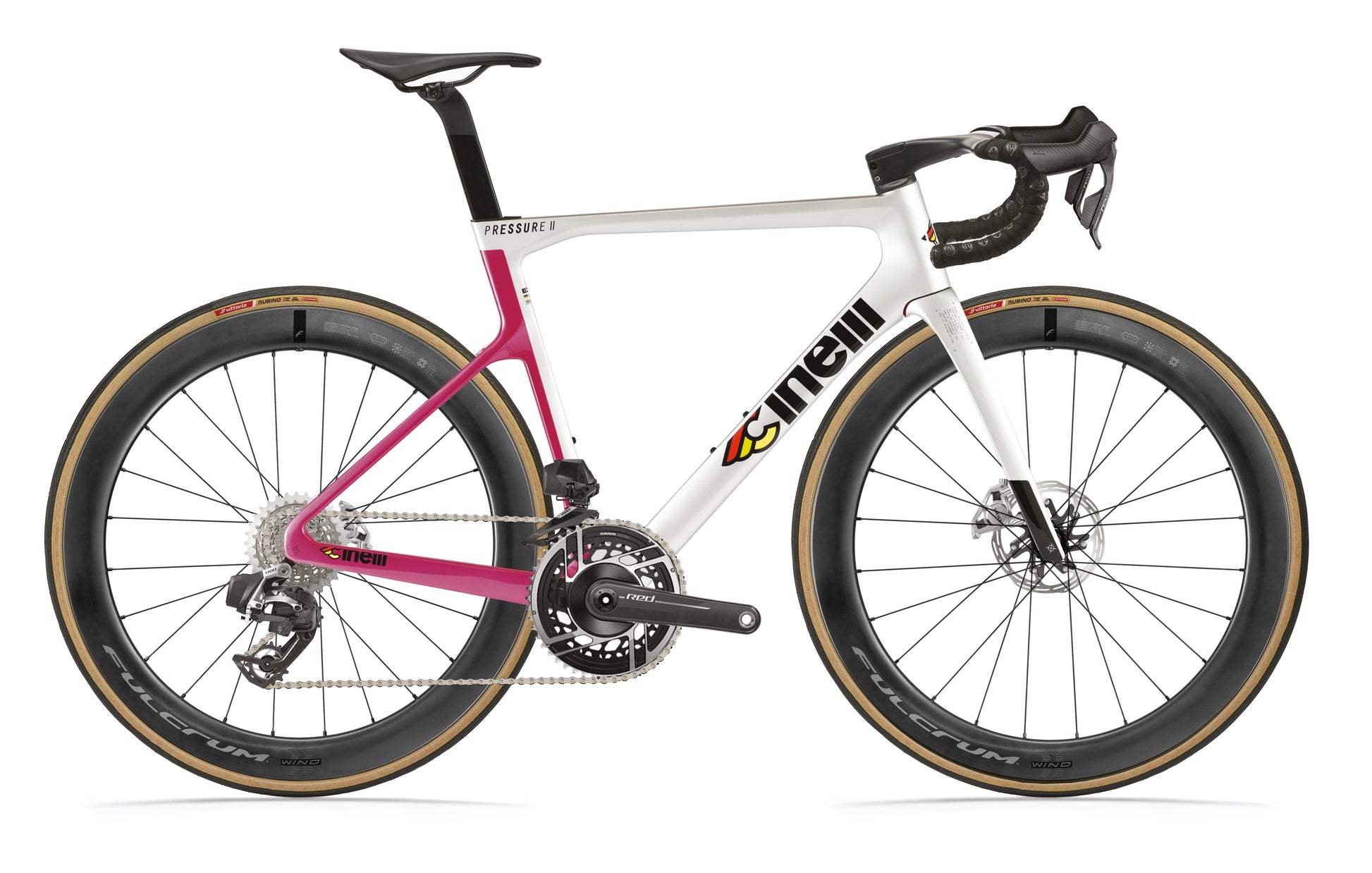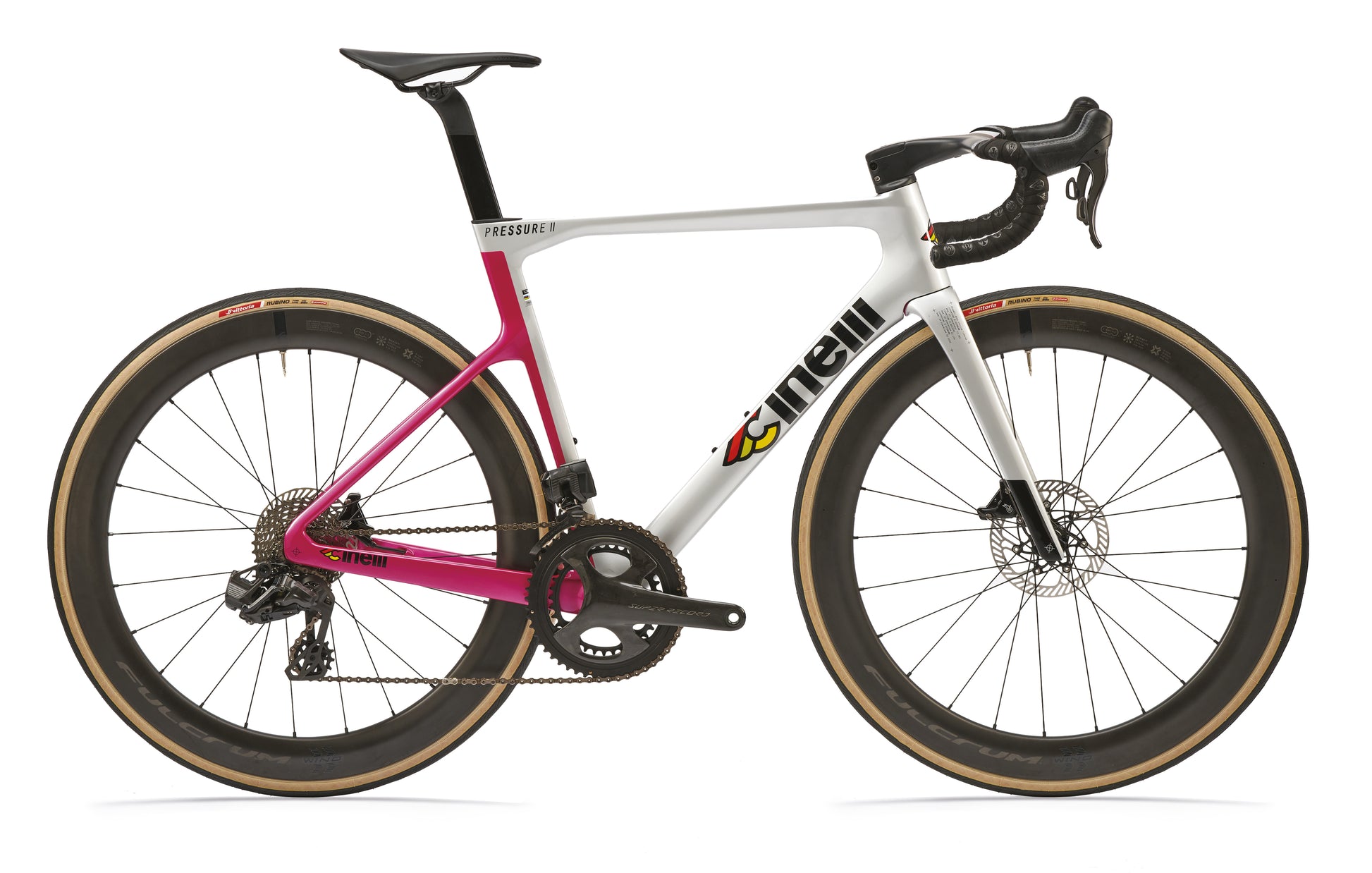 The Pressure 2 is the pure expression of Cinelli’s aero road design language—a platform developed in our racing laboratory for riders who demand nothing but speed. Every detail has been engineered to maximize performance, while staying true to Cinelli’s legacy of Italian road racing excellence. It’s the ultimate tool for competitive cyclists chasing podiums, records, and pure riding sensation.